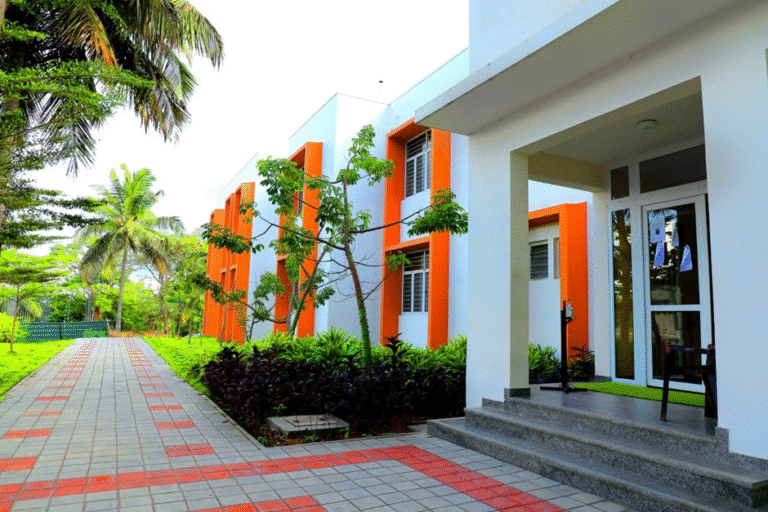 Nestled amidst the serene surroundings of Kolur Gururayanapura, Bangalore South, just 18 km from the city center, the campus offers a peaceful retreat from urban distractions. Spanning 10.5 acres, it is equipped with all essential amenities to ensure that students feel safe, comfortable, and motivated throughout their academic journey.