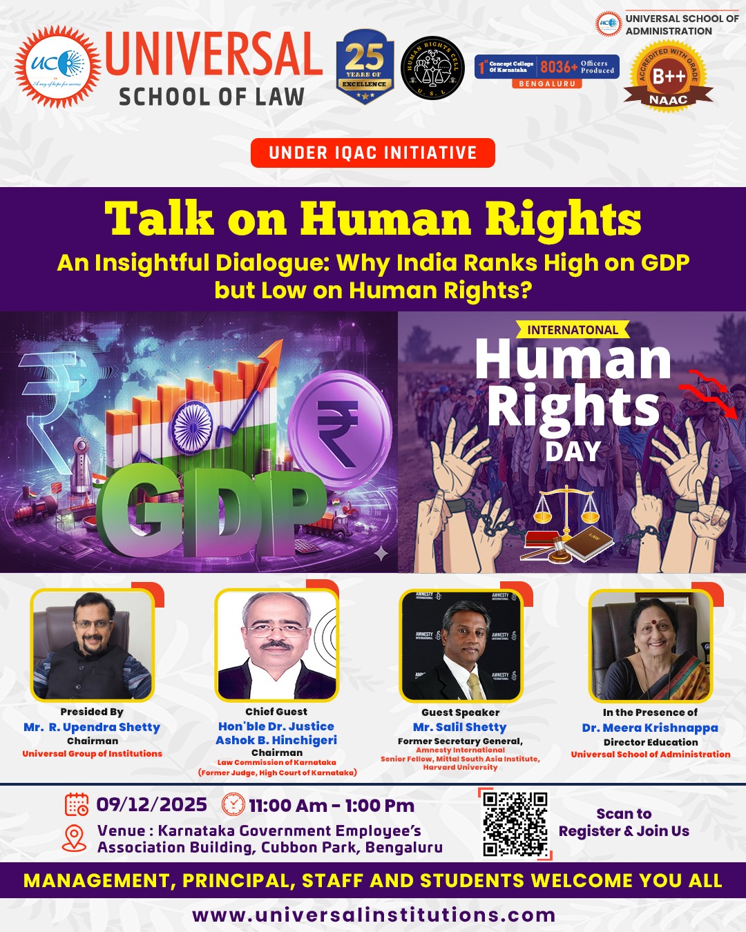 Universal School of Law is a distinguished center for legal education, committed to shaping socially conscious and ethically grounded legal professionals.
